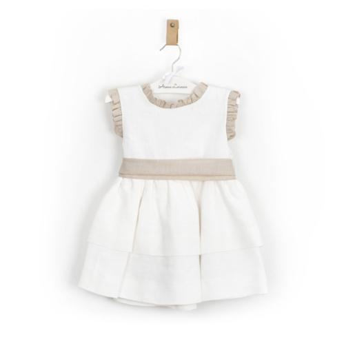 Bueno al grano, que este vestido para mi es espectacular, en tonos crudo y avellana confeccionado con lino y tul, lleva una especie de fajín cosido (mucho mas cómodo) con un toque de pedrería, y esa maga francesa rematada con tul tan acertada.