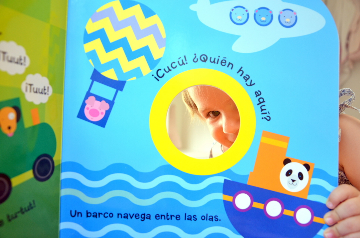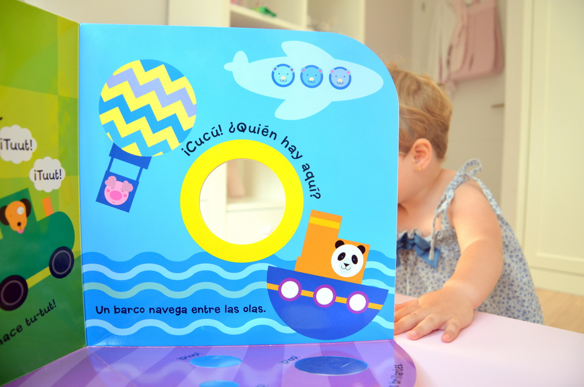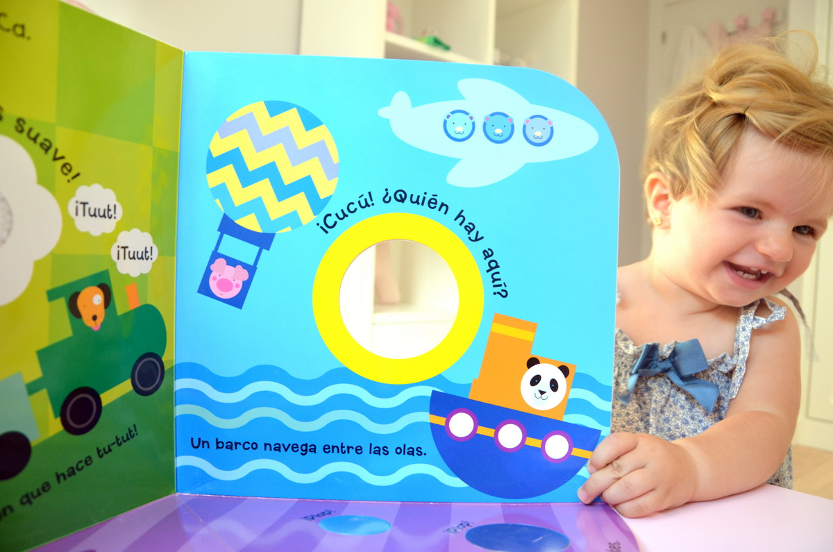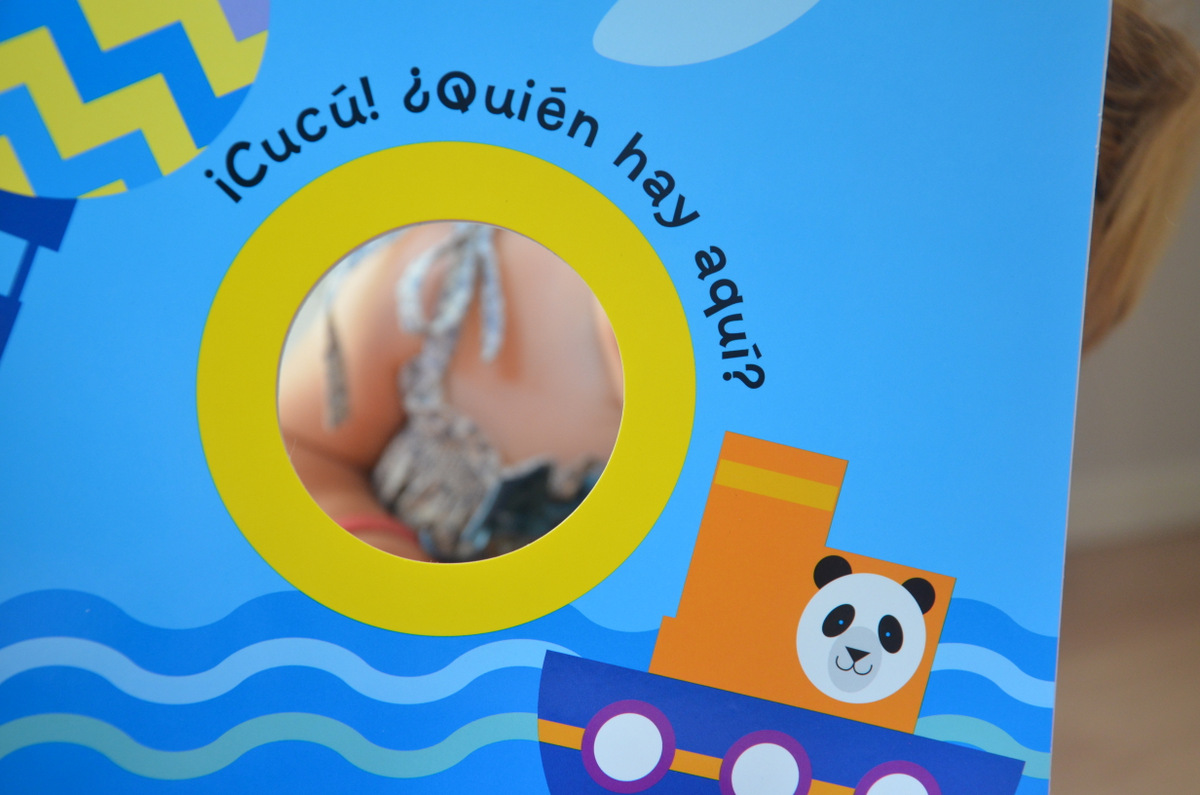 Ahhhh y lo mejor es que incluye un agujerito para jugar a su juego favorito del muuundo… ¡El cucu-tras! en nuestra versión: «¿Donde esta la nenaaaaa? BabyA: escondida tras el libro hasta que sale emocionada diciendo: AQUiiiiiiiií…»